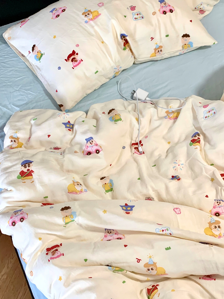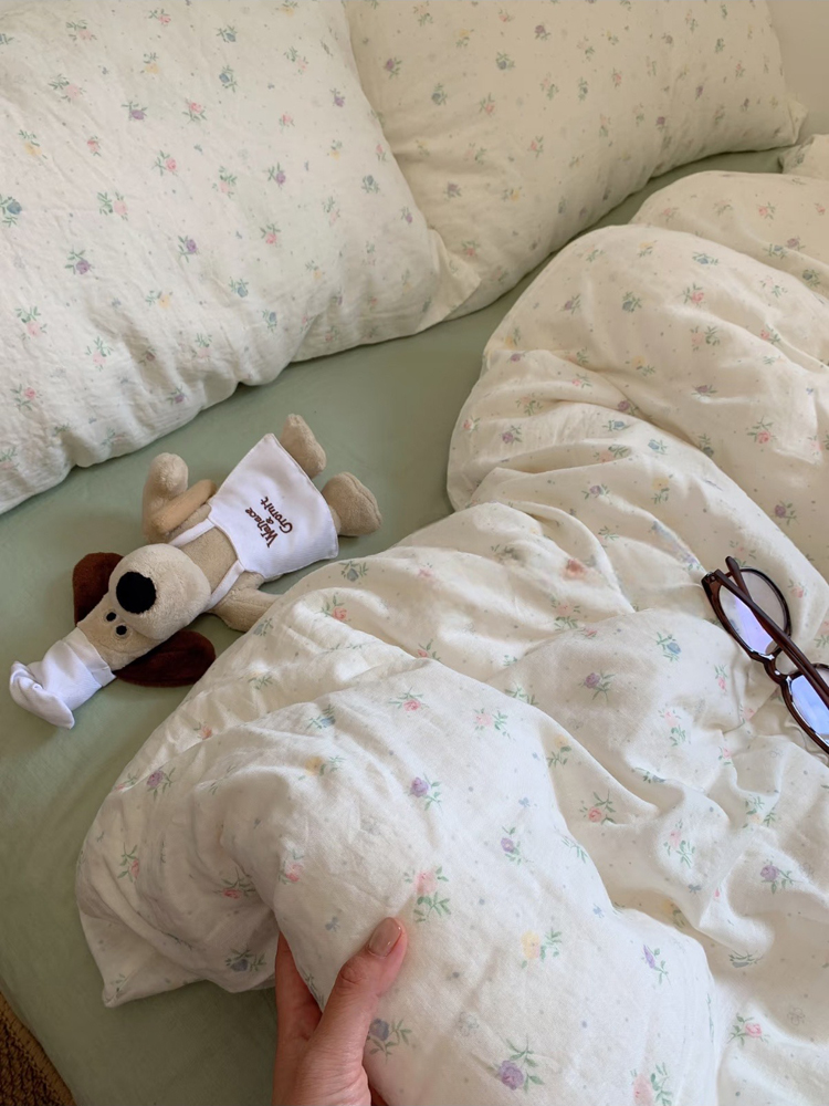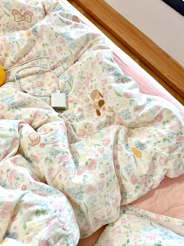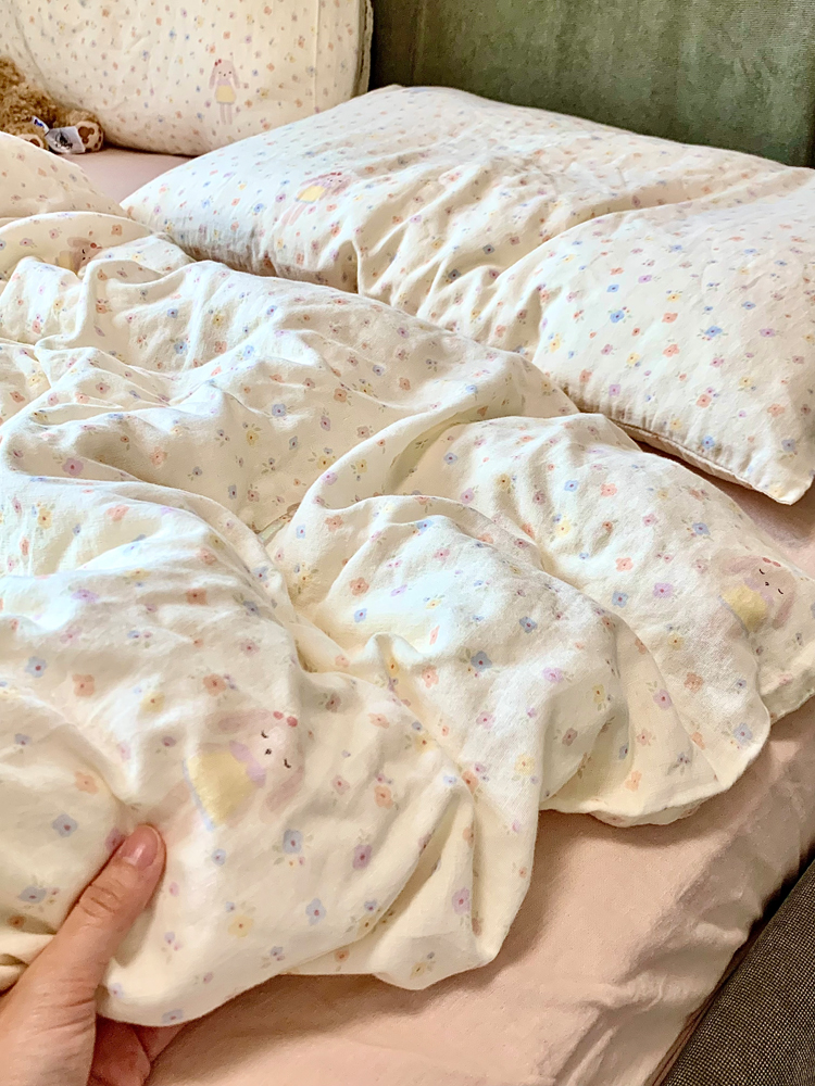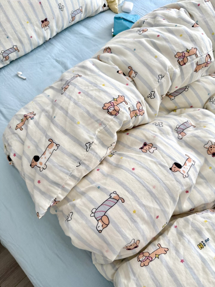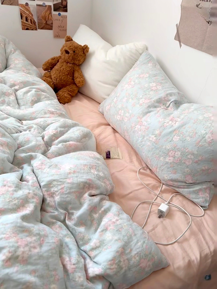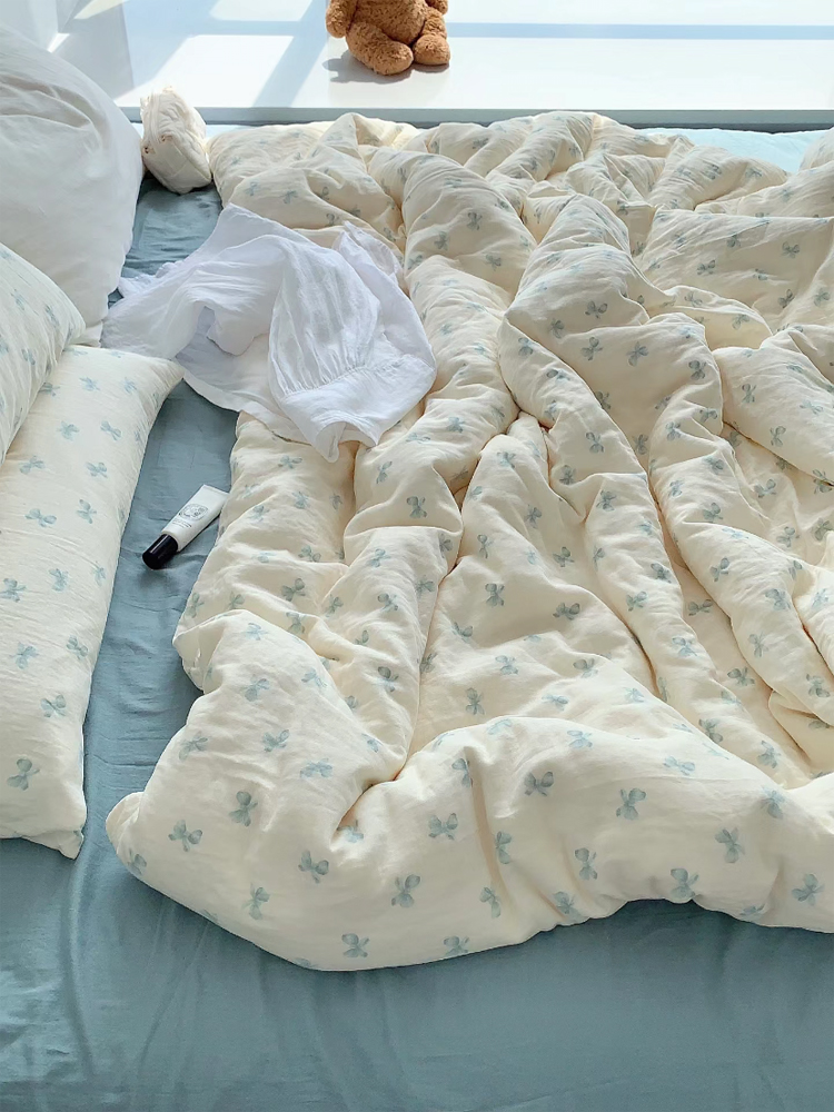 > a类母婴级全棉有氧双层纱四件套纯棉纱布被套床单学生宿舍三件套
