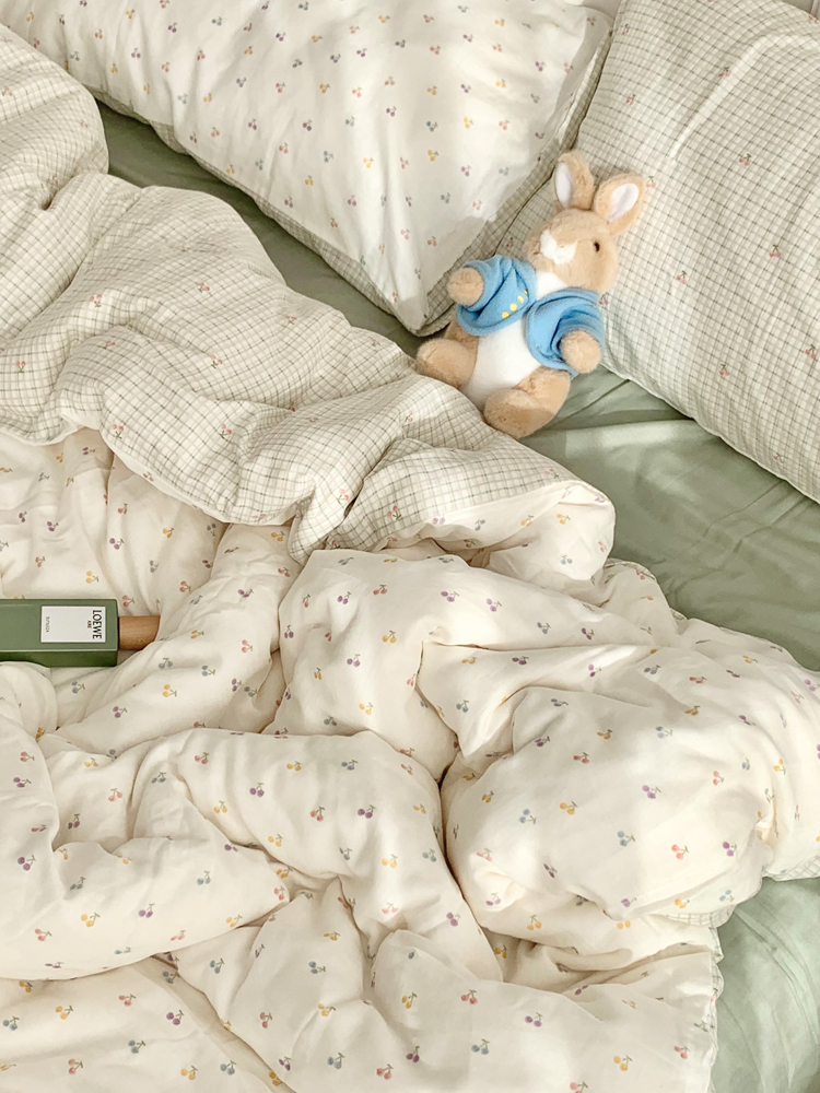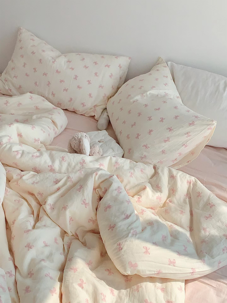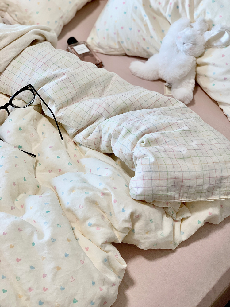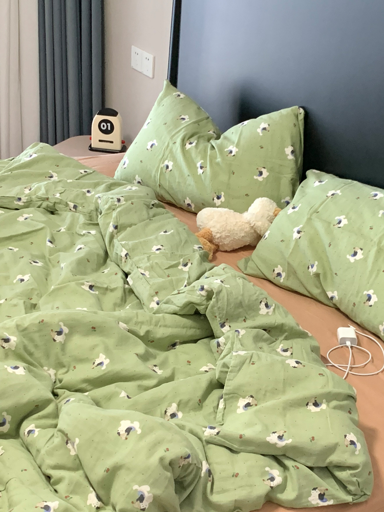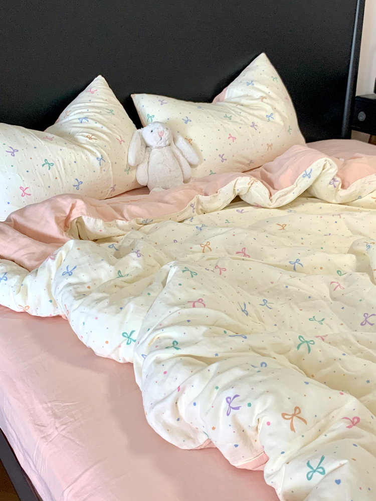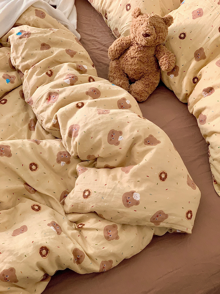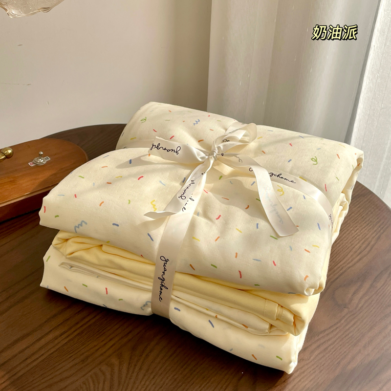 > a类母婴级全棉有氧双层纱四件套纯棉纱布被套床单学生宿舍三件套