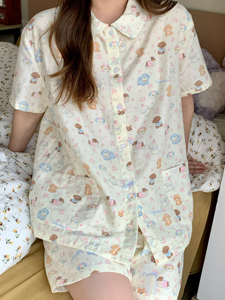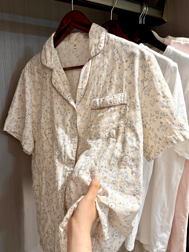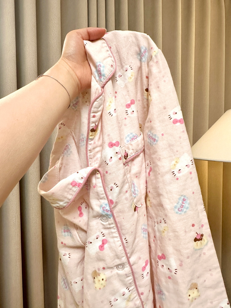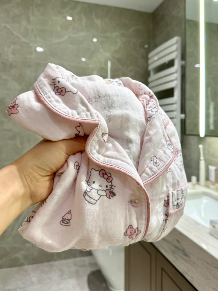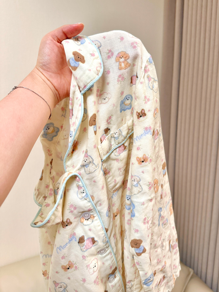 > A类100%纯棉双层纱长袖睡衣套装女春夏秋婴儿棉纱全棉月子家居服