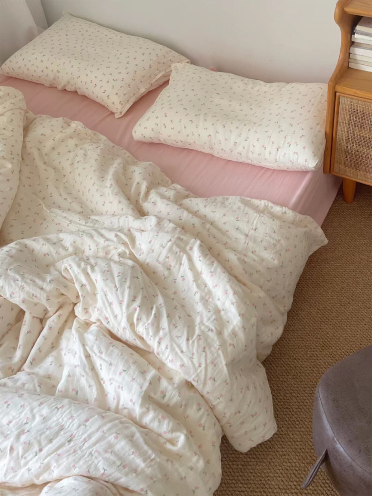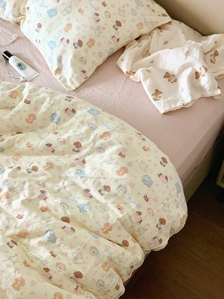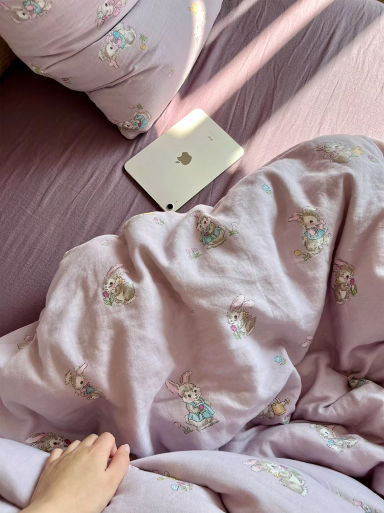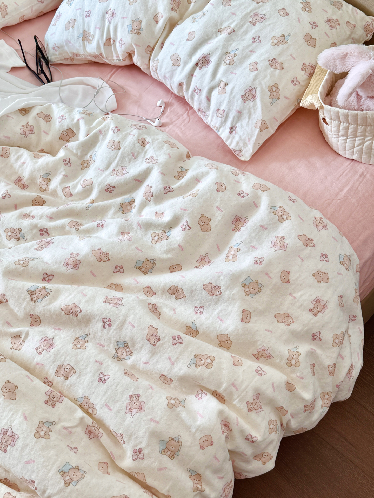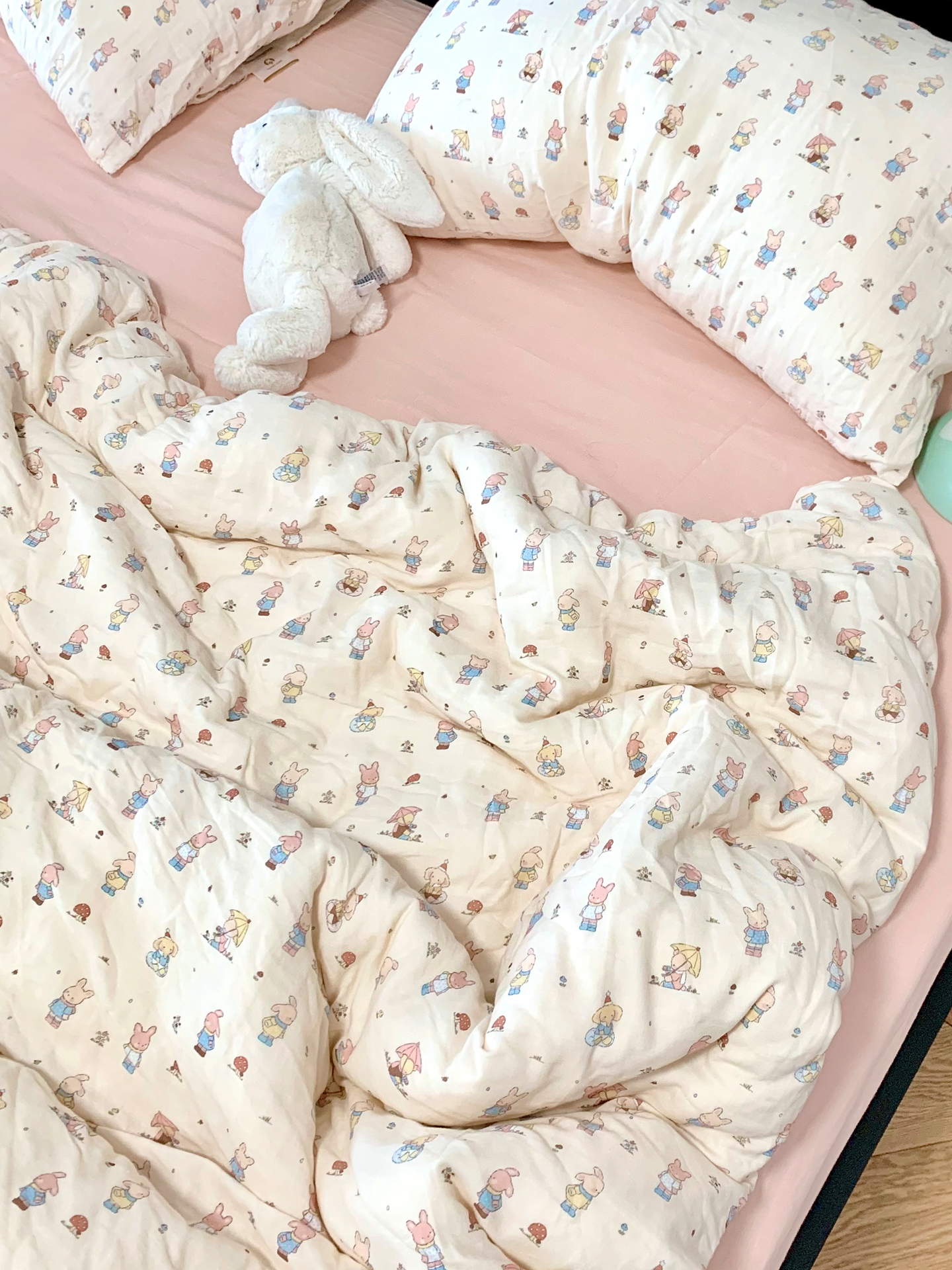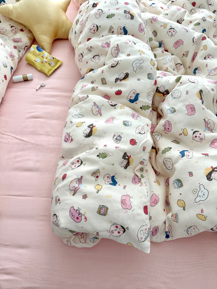 > a类卡通全棉有氧双层纱四件套纯棉母婴级纱布被套学生宿舍三件套