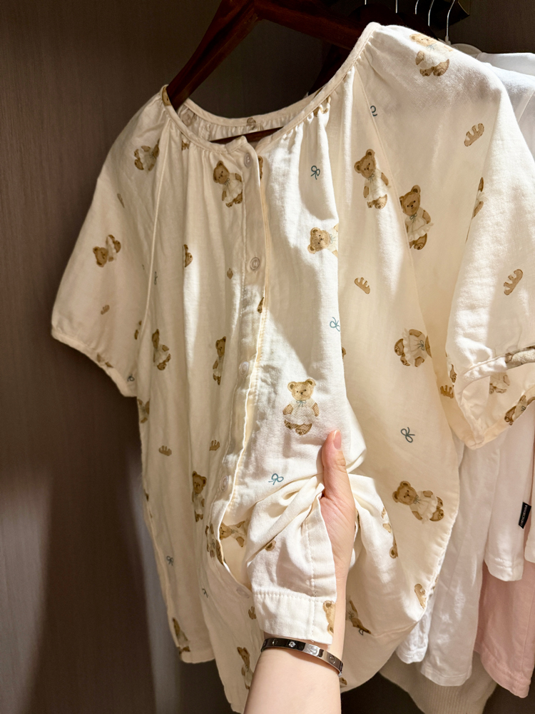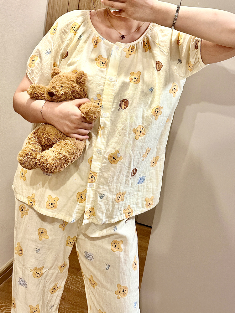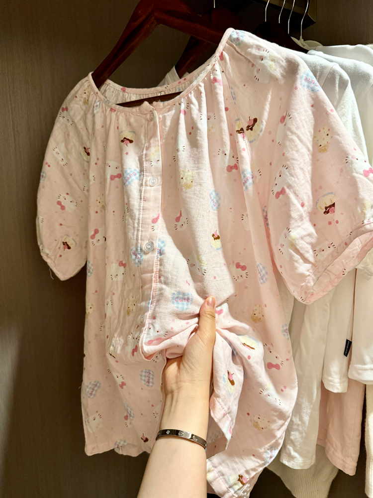 > a类100%全棉纯棉双层纱布睡衣女2025夏季薄款短袖长裤家居服套装