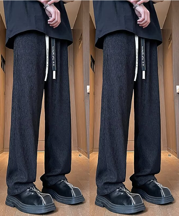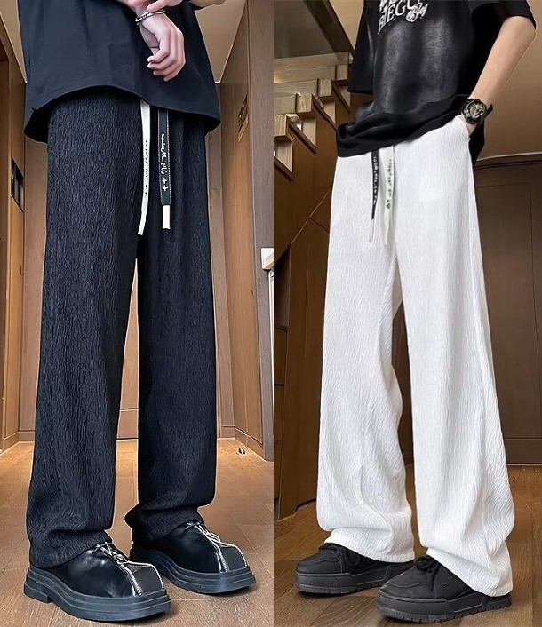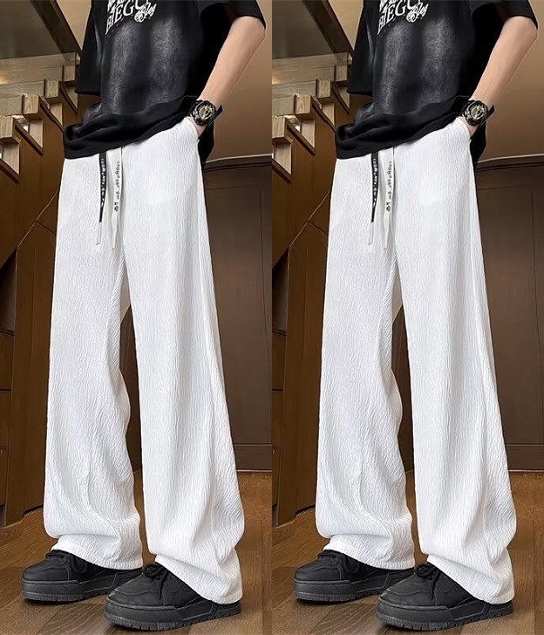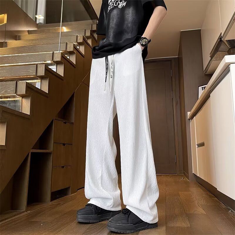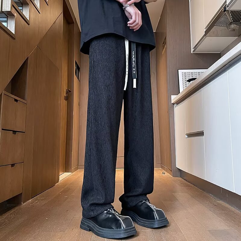> 肌理感夏季冰丝直筒裤男休闲百搭高级感宽松大码纯色帅气潮流长裤