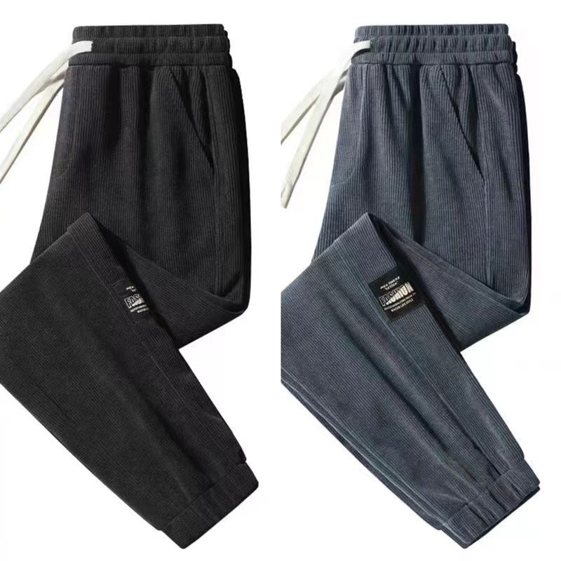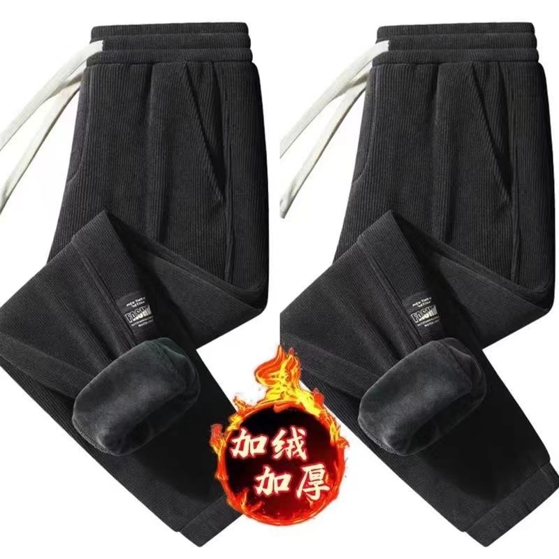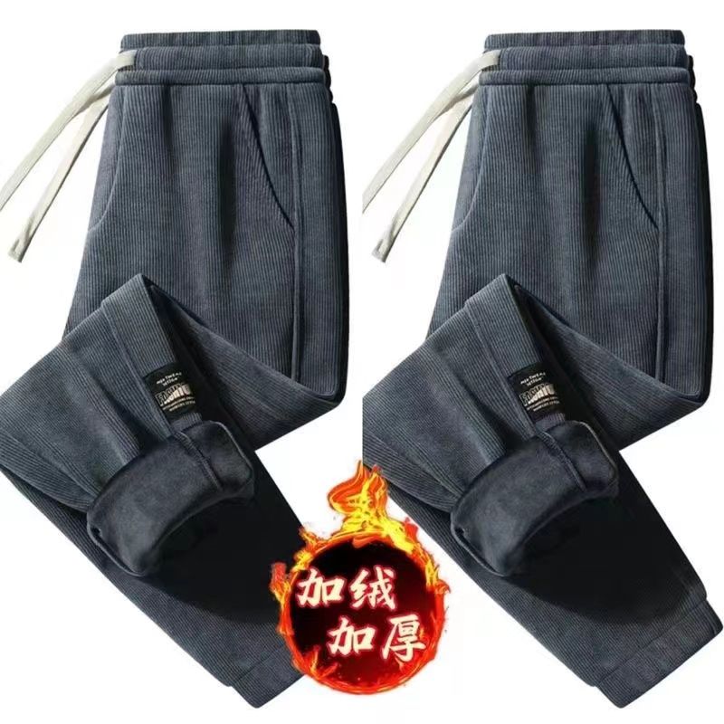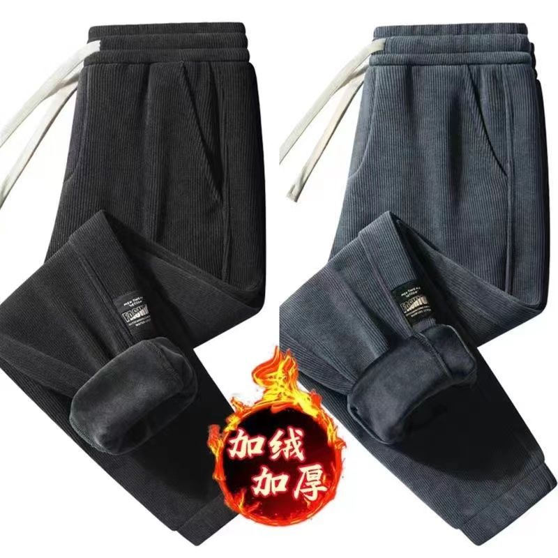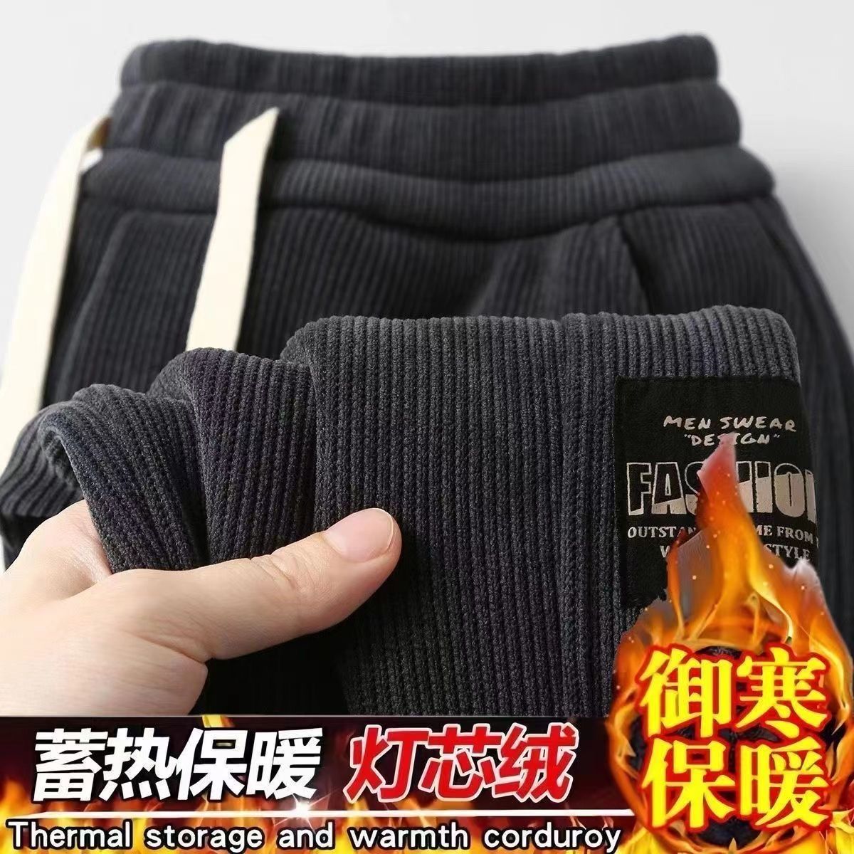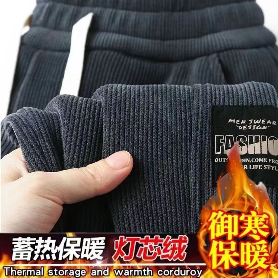 > 秋冬季灯芯绒束脚长裤子男士加绒加厚百搭休闲潮牌运动休闲裤子潮