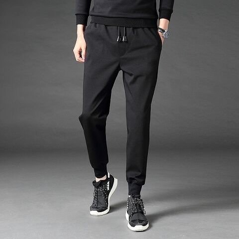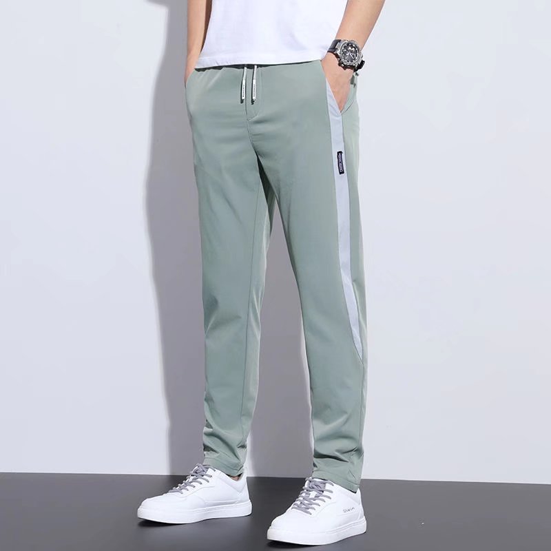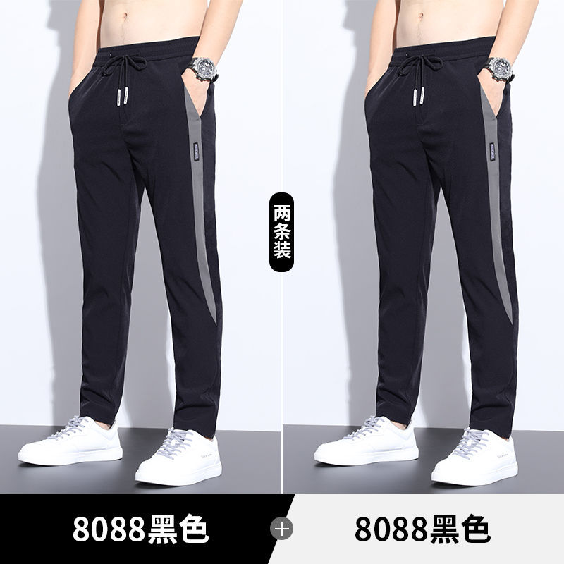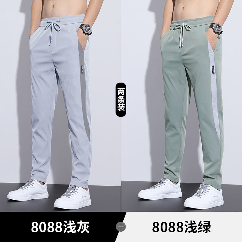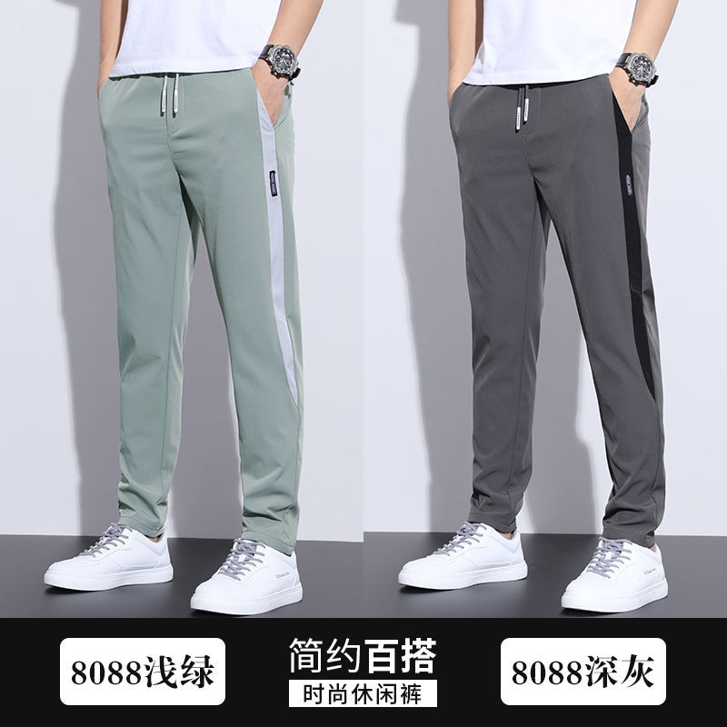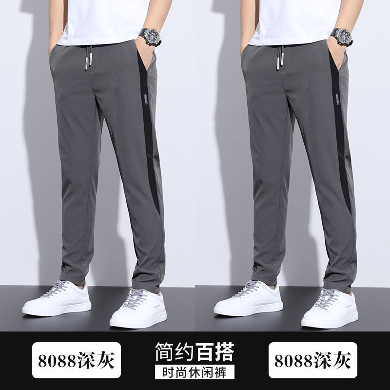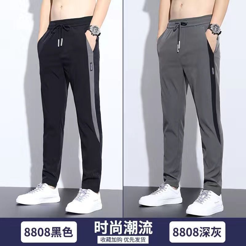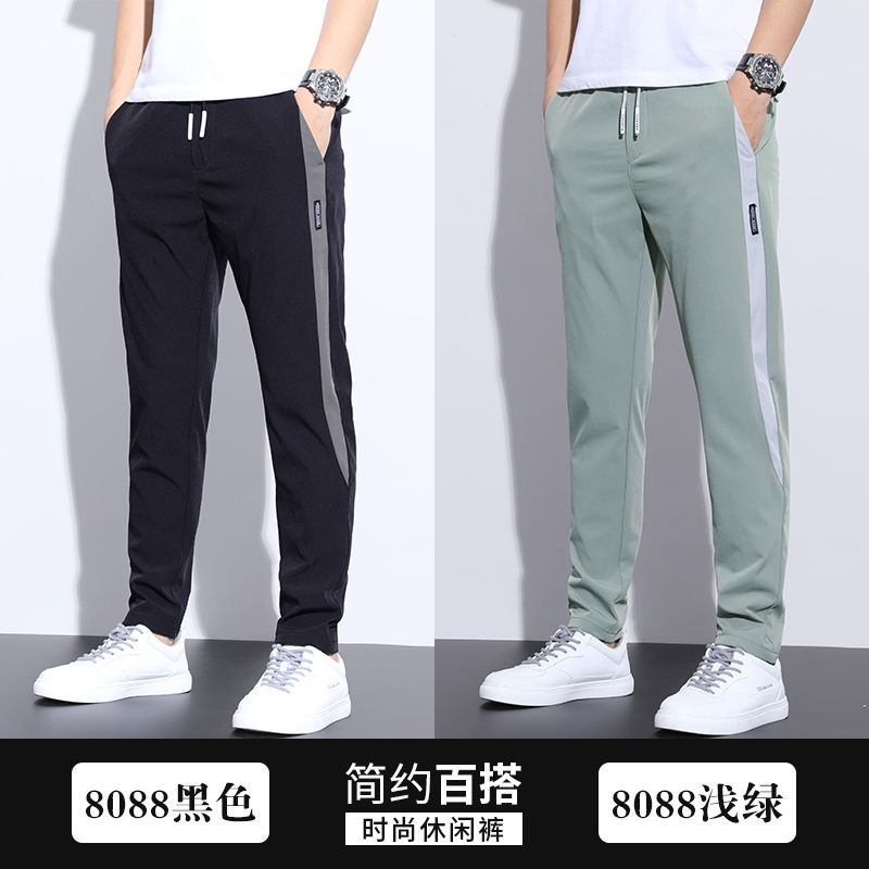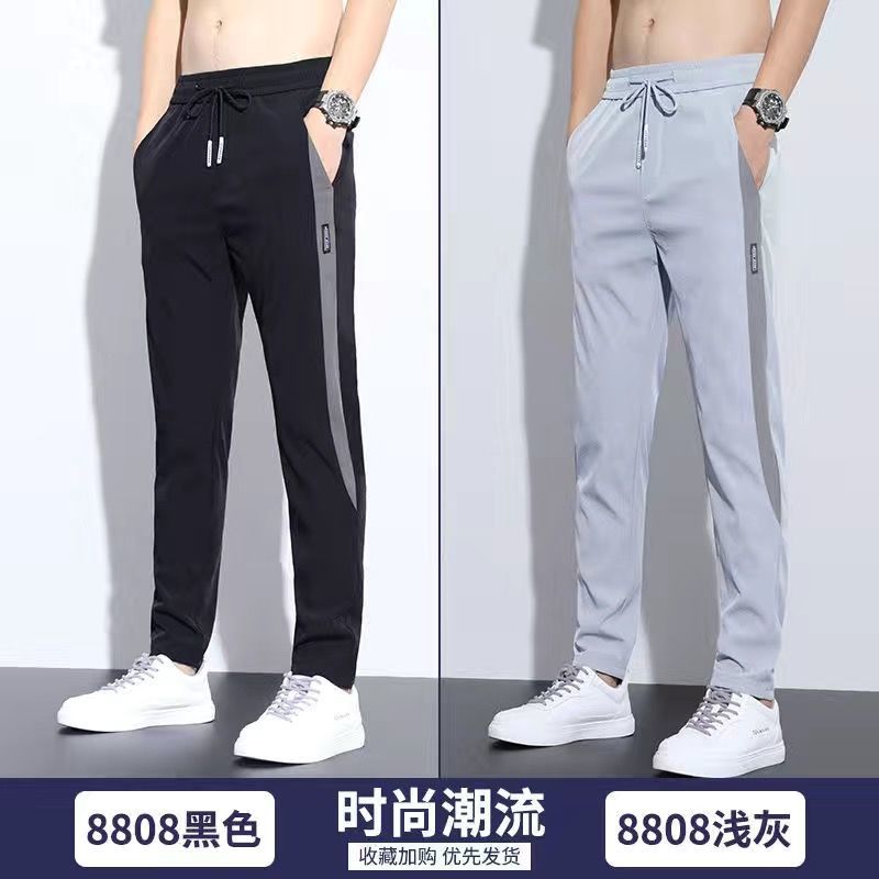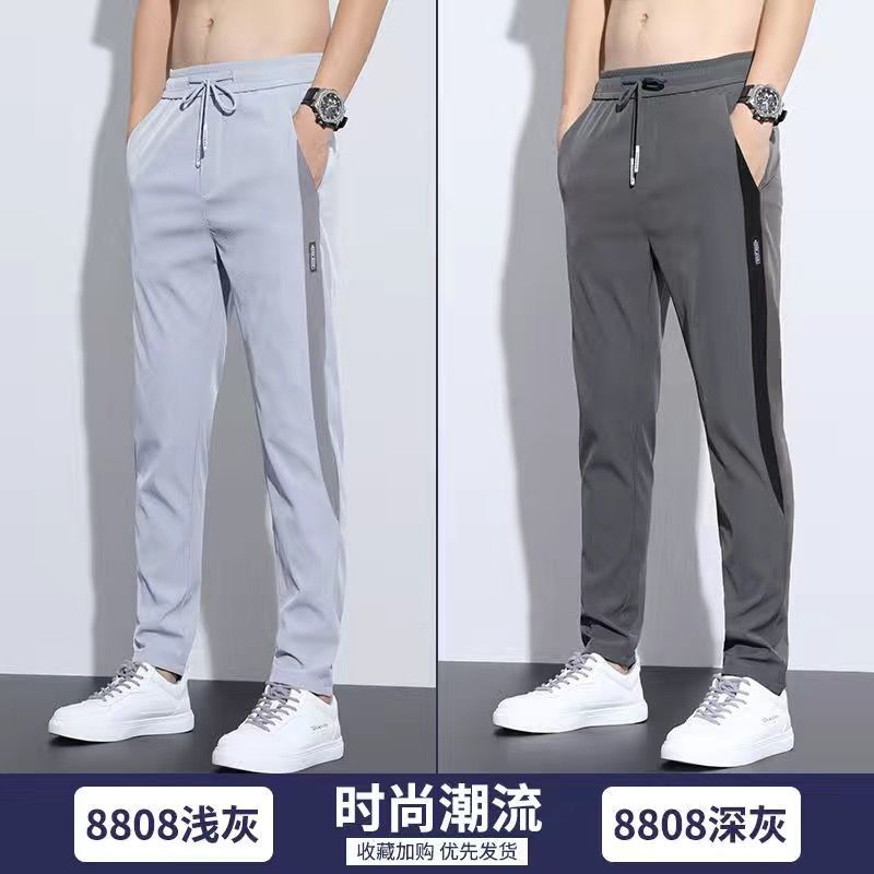 > 夏季裤子男宽松直筒休闲裤弹力冰丝薄款韩版修身男士速干运动长裤