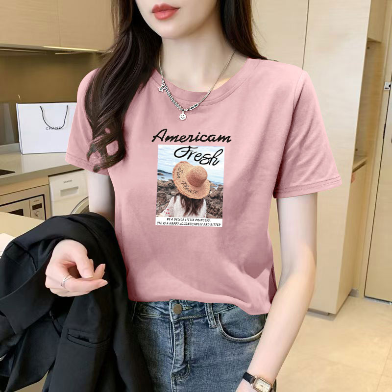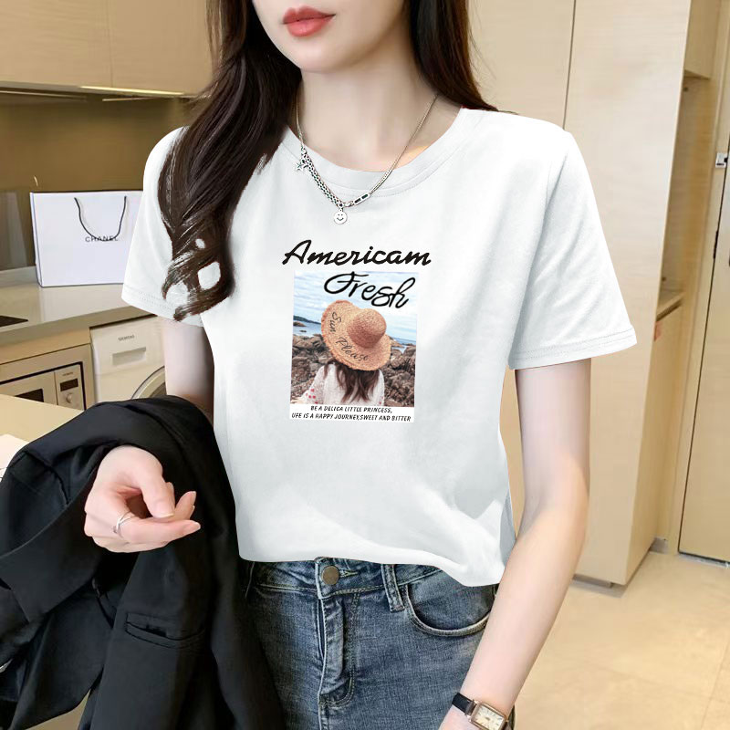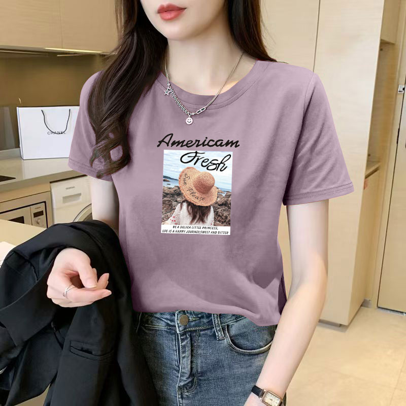 高品质纯棉短袖T恤女夏装新款减龄正肩简约圆领设计感气质上衣ins