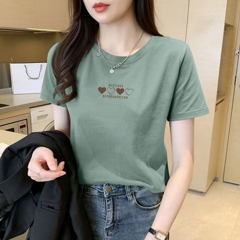 > 高品质纯棉短袖T恤女夏装新款减龄正肩简约圆领设计感气质上衣ins