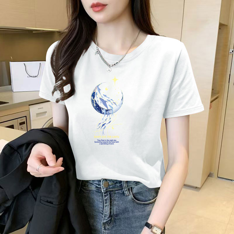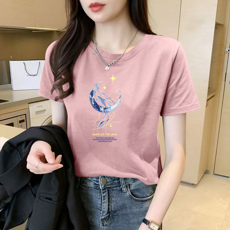 > 100%纯棉女士短袖t恤女新款爆款洋气韩版大码显瘦休闲圆领上衣ins